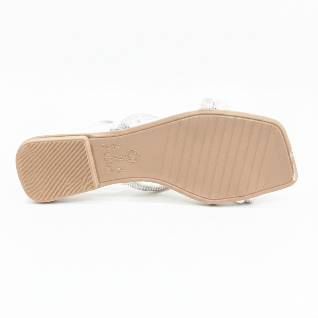 Eleve o seu visual de verão com a Sandália Flat 03298. Unindo a leveza da cor branca com o brilho luxuoso do strass, este modelo é a escolha definitiva para quem não abre mão do glamour, mesmo em produções casuais.