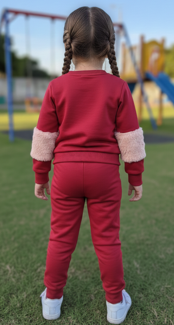 Conforto Híbrido: Blusa aconchegante para proteger do vento e calça em viscose, que garante um caimento fluido, leveza e total liberdade para brincar.