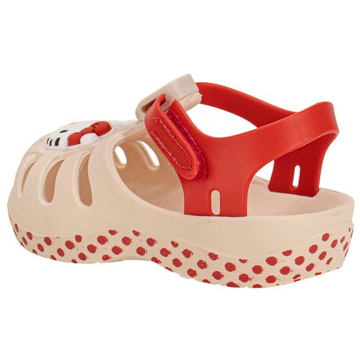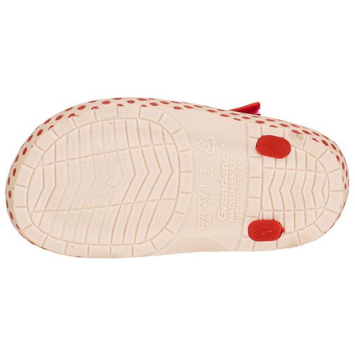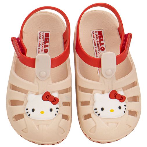O Clog Hello Kitty 23361 é o calçado que une a fofura da personagem mais amada do mundo com a praticidade que a rotina dos bebês exige. Em uma combinação clássica de Marfim e Vermelho, este modelo é perfeito para deixar os pezinhos protegidos, arejados e cheios de estilo.