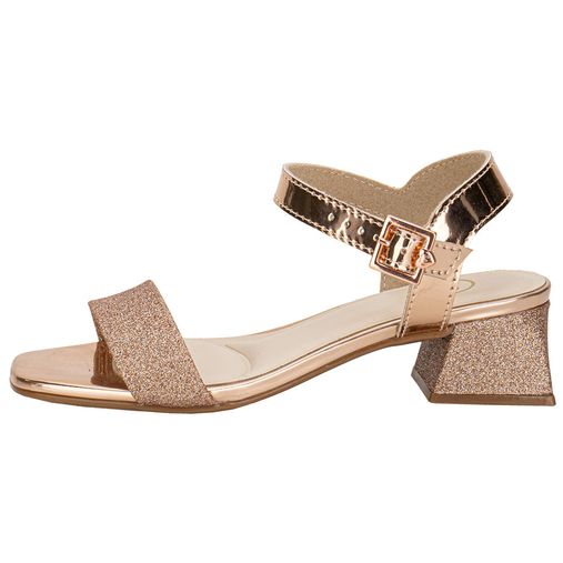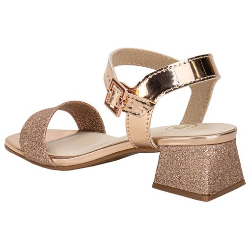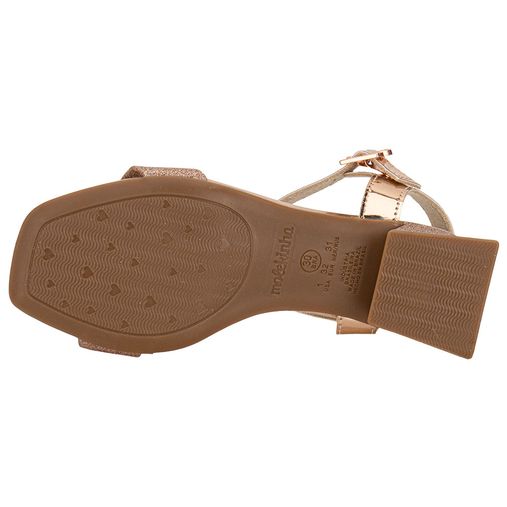 A Sandália Molekinha Ouro Rosado foi desenhada para transformar qualquer ocasião em um momento especial. Com um acabamento metalizado sofisticado e um salto grosso que garante estabilidade, ela é a escolha número um para festas, formaturas e eventos onde o estilo é protagonista.