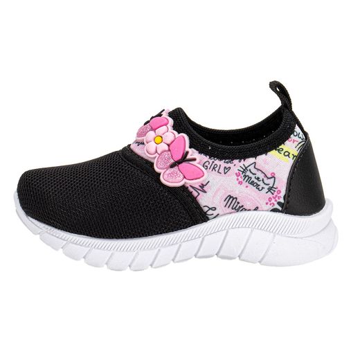O Tênis Menina Nayarinha (Referência 396TN) une a atitude do preto com a delicadeza do rosa, resultando em um calçado moderno e cheio de personalidade. Projetado para suportar a energia do dia a dia, ele oferece segurança para correr, pular e brincar sem abrir mão do estilo.