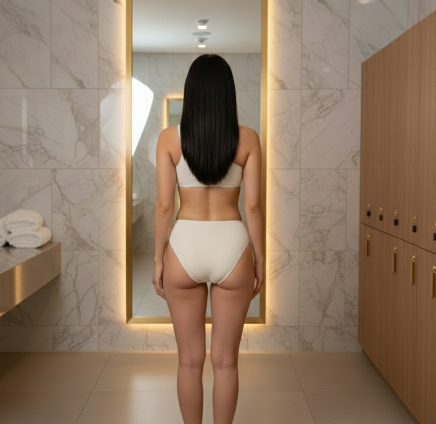Modelagem: Busto "Shell" (Concha) que valoriza o decote de forma anatômica.